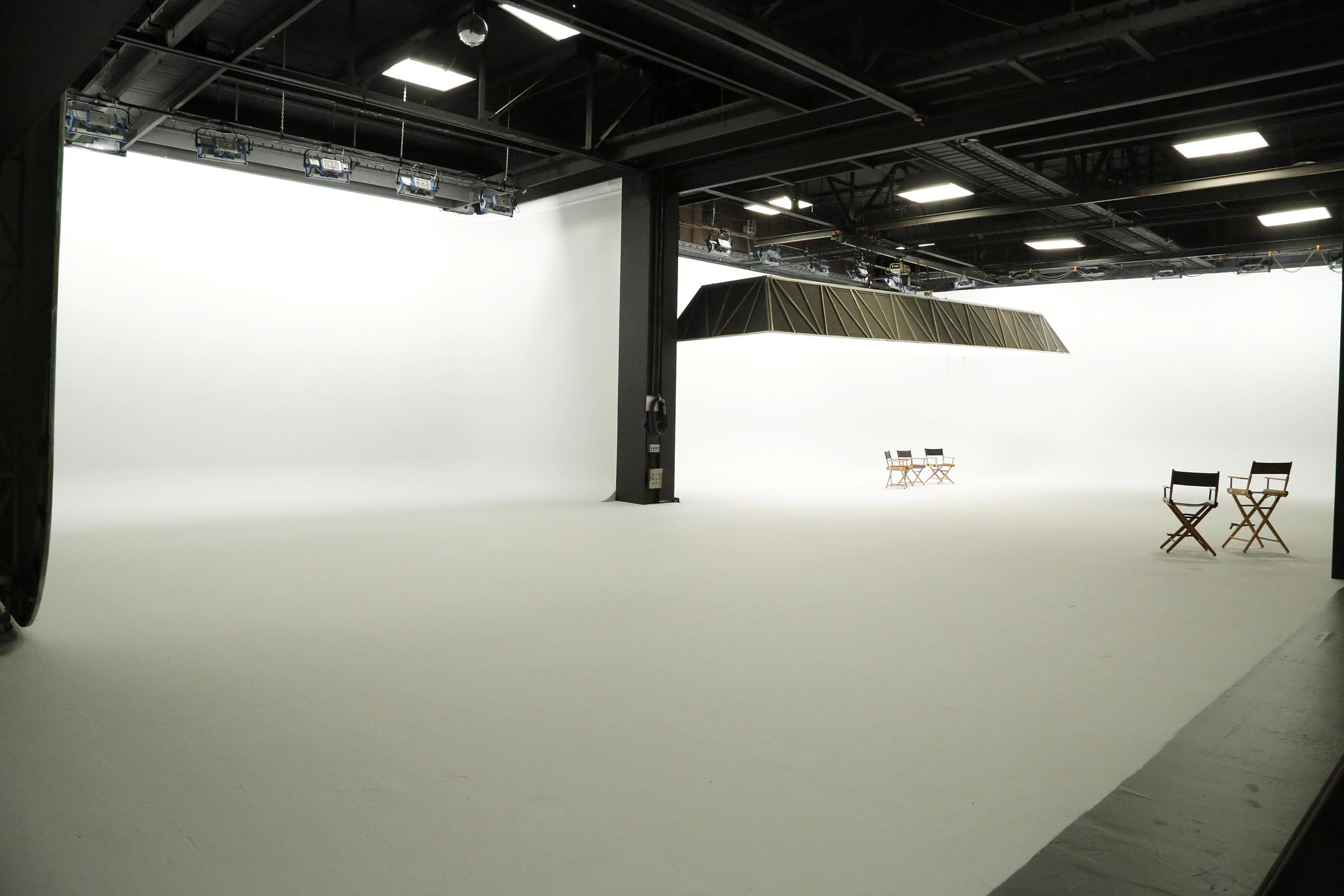 Stage A is the larger of the two at 50’x70′ with a 100′ cyc and 10’x40′ light bank with full RGBW capability. Stage B is 40’x70′, with a 40′ shallow cyc and green room overlooking the stage. Both stages are lit with Arri Skypanels and can be controlled through the Stellar app or your board. Available equipment includes rolling tabs, seamless backdrops, additional LED lights, C-Stands, light stands, flags, sand bags, tables and chairs and a large assortment of Mole Richardson lights.
